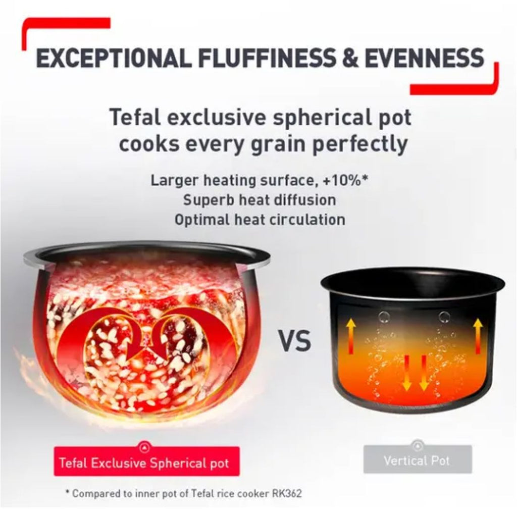 • Rice cooker with exclusive spherical pot for optimal heat circulation and diffusion—promising flavorful, evenly cooked and fluffy rice